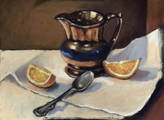 Pitcher With Orange, 9x12, framed 12.5x15.5