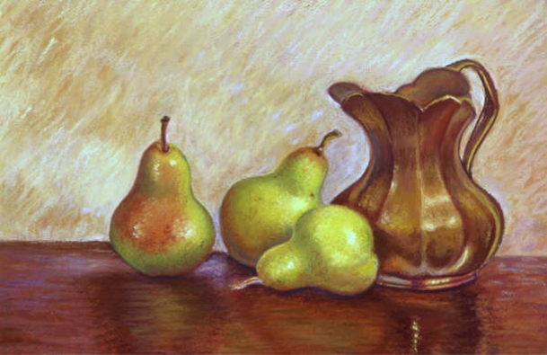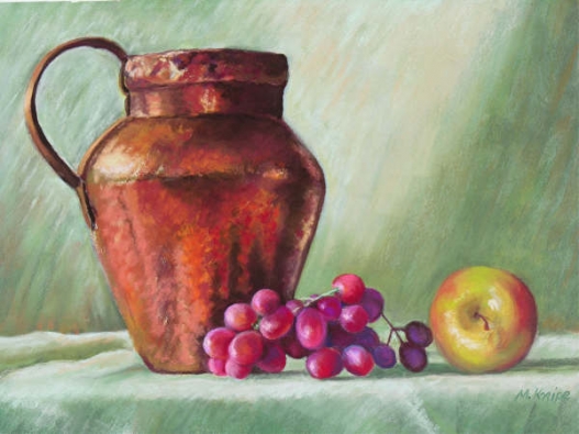 Pitcher With Orange, 9x12, framed 12.5x15.5